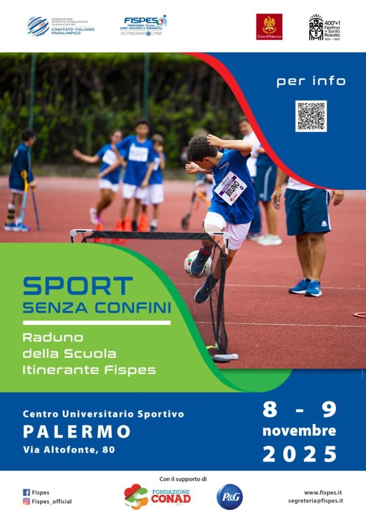 PALERMO. Sabato 8 e domenica 9 novembre approda a Palermo il progetto “Sport Senza Confini”, il percorso itinerante rivolto ai giovani atleti under 14 con disabilità visiva, motoria e intellettiva lieve organizzato dalla FISPES insieme a Fondazione Conad ETS e Procter & Gamble Italia.