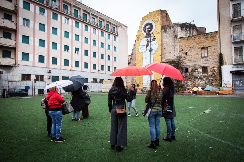 Il percorso di formazione delle mamme tutor andrà avanti per tutto il mese di dicembre, a cura di Associazione Handala e SEND. Nelle immagini che pubblichiamo, scattate da Mapi Rizzo, il primo appuntamento della formazione. In quest’occasione le mamme hanno fatto una passeggiata nel quartiere. Hanno conosciuto le realtà associative che vi operano e approfondito le iniziative di CASA a Ballarò. Ma soprattutto hanno iniziato a comprendere il loro ruolo e a fare parte di un gruppo, una rete capace di ottenere e offrire supporto. “Ancora una volta una comunità che si prende cura di sé stessa”, spiegano gli organizzatori.