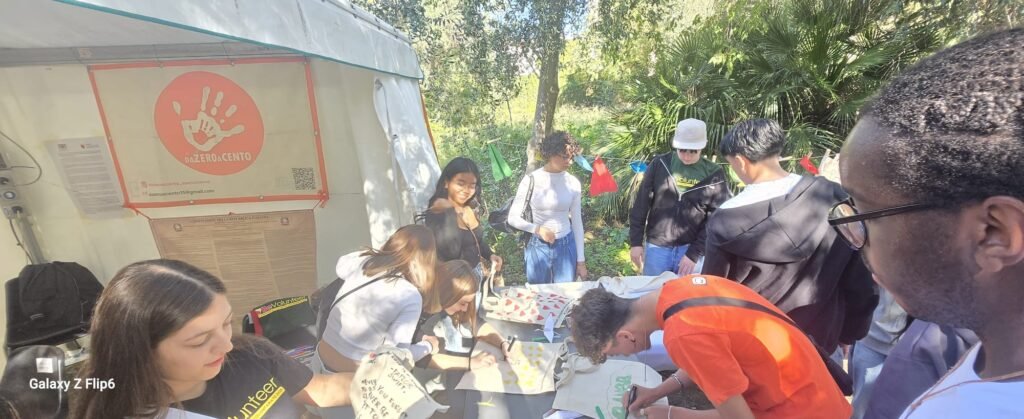 La presidente dell’Associazione Da Zero a Cento, Barbara De Sieno, con sede a Carini, ci fa vedere un tavolo dove vengono dipinte borse partendo dallo slogan della due giorni, We care, prendersi cura, preoccuparsi. Fanno sia attività per piccoli, come il Teatro Ramshi Bai, che per anziani, come il corso di approccio ai device di ultima generazione, alle banche online e alla sicurezza informatica. Ma ci sono pure laboratori scientifici e origami. L’avvocato Claudia Pilato fa parte dell’associazione L’arte di crescere, nata per veicolare l’importanza, anche in termini di prevenzione per mamma e lattante, dell’allattamento materno. Hanno commissionato il primo murale, Sangu e latti, comparso allo Sperone. Assistono sia a domicilio che in sede come mutuo soccorso le donne dopo il parto. Hanno ricevuto 100 abiti da sposa di alta sartoria. Il 23 dicembre al Teatro Biondo con questi abiti faranno un evento. Il ricavato servirà a finanziare un’area fitness allo Sperone per le donne che hanno espresso questo desiderio.
