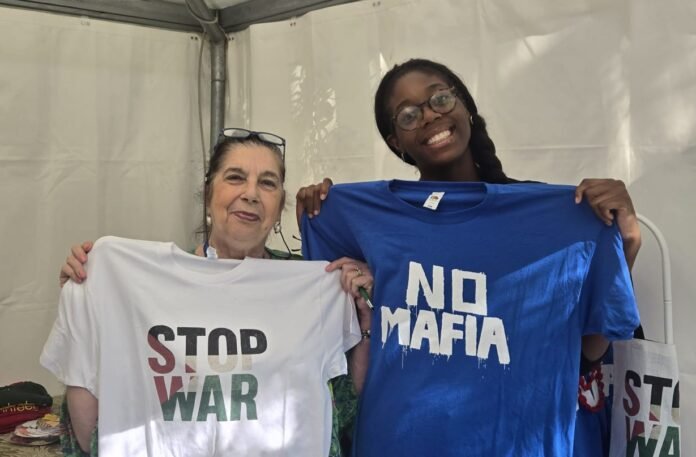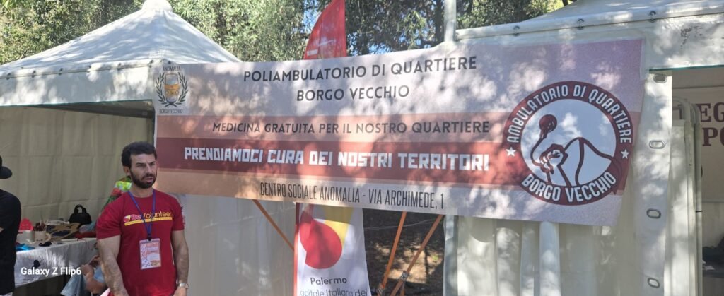 Valeria Perricone ci parla della Biblioteca Sociale del CESVOP, che ha sede dalle parti di Via Malaspina a Palermo e che è anche casa del volontariato. Tiziana Raia ci descrive l’associazione GEFYRA, che in greco significa ponte. Si occupano di prevenzione del disagio in età evolutiva, di famiglie e di salute mentale. Andrea Esposito ci parla dell’ambulatorio medico del Borgo Vecchio che fa parte della Rete degli ambulatori popolari. Sono assicurate prestazioni di cardiologia, neurologia, ginecologica ed esami ecografici. La Sartoria Al Reves, società di cooperativa sociale, si occupa del riuso e riciclaggio dell’usato lavorando anche con i disabili. Fanno anche borse, ci dice Caterina Chinnici, corsi di cucito per giovani disabili e provvedono pure a stampare sui tessuti. Il mercoledì c’è il corso di uncinetto. Quanto realizzato viene anche dato ai senza tetto e ai bambini delle case famiglia. L’altissima Feva, di origini nigeriane ma nata in Italia, frequenta il quinto anno del liceo classico. Ha fatto un corso di cucito, dice di essersi affezionata all’Associazione ed è venuta a trovarli presso lo stand.