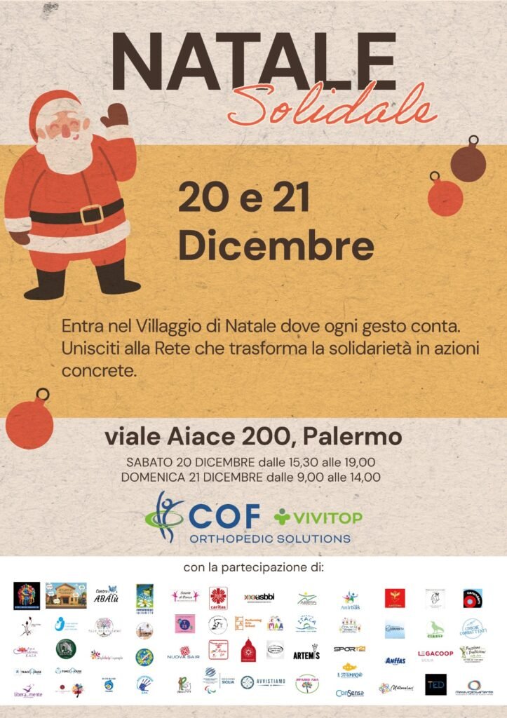 PALERMO. Il 20 e 21 dicembre in viale Aiace 200 a Palermo arriva il “Natale solidale”, un Villaggio di Natale che mette al centro le persone e la comunità, ideato per offrire un luogo sereno, accogliente e accessibile, lontano dal caos delle fiere tradizionali. Un appuntamento pensato soprattutto per i giovani con disabilità e per le loro famiglie, che spesso rinunciano agli eventi più affollati e rumorosi, ma non per questo devono rinunciare alla magia delle feste. E vuole essere un momento di respiro: un ambiente sicuro e tranquillo in cui i giovani con disabilità possono vivere l’atmosfera natalizia senza barriere, mentre i genitori trovano accoglienza, ascolto e una rete di supporto capace di alleggerire le sfide quotidiane.