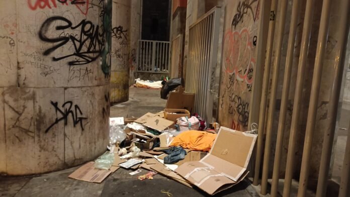 Iniziamo dal sottopasso della metropolitana davanti al Palazzo di Normanni dove ci sono tre persone. Tra queste, c’è Lisa che fa uso di droghe che ha una brutta flebite. In passato è stata ricoverata in ospedale ma, purtroppo, è ancora in strada.