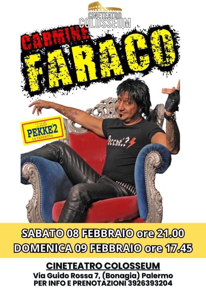 Sabato 8 febbraio alle 21 e domenica 9 febbraio alle 17.45 sarà la volta invece del grande comico Carmine Faraco che torna al Colosseum, a grande richiesta, con uno spettacolo tutto nuovo.