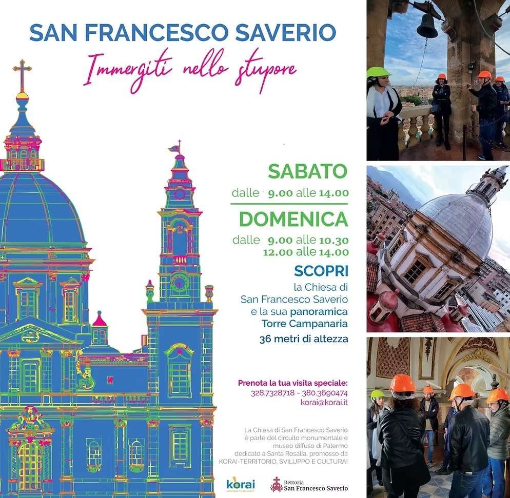 La Chiesa di San Francesco Saverio, come bene che custodisce il trionfo di S. Rosalia dipinto dal fiammingo Geronimo Gerardi e dalla cui torre si abbraccia con lo sguardo il sistema dei luoghi rosaliani di Palermo, si candida ad essere riferimento e Santuario dei giovani e tappa di un percorso sui passi di Rosalia, santa giovane e “Pellegrina di speranza”. Un tesoro artistico e devozionale sicuramente da non perdere.