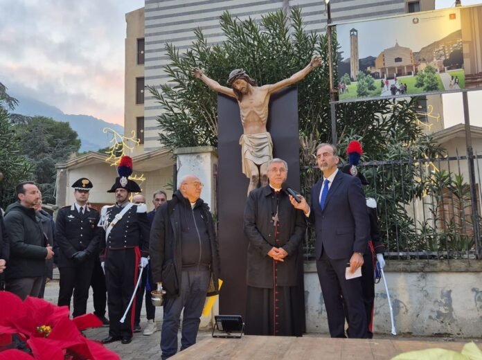 La restituzione del Crocifisso è stata anche l’occasione per fare il punto sul piano di rigenerazione urbana e sociale di Borgo Nuovo, finanziato dal governo nazionale sul “modello Caivano”. Il progetto prevede 25 milioni di euro di fondi statali, ai quali si aggiungono 17 milioni di euro di cofinanziamento da parte della Regione Siciliana e del Comune di Palermo.