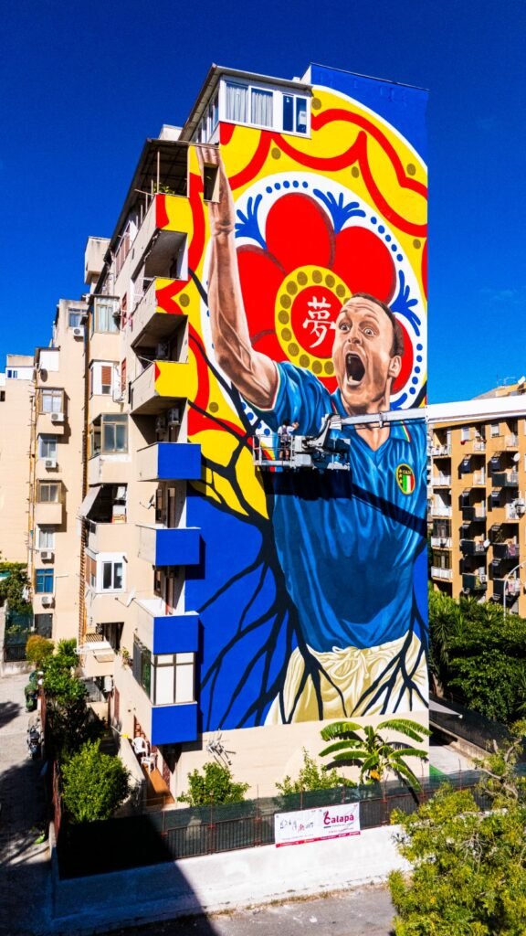 PALERMO. La Fondazione Made in Sicily Museum il 18 settembre, ad un anno dalla scomparsa di Totò Schillaci, presenta alla città, alla presenza dei familiari, del sindaco di Palermo Roberto Lagalla, del Presidente della V circoscrizione Andrea Aiello, dei rappresentanti delle prime tre tappe dell’Itinerario delle Radici (Aeroporto Falcone Borsellino, Piana Degli Albanesi, Isola delle Femmine), il murale “Yume: Un Sogno per Palermo” dedicato a Totò Schillaci e quarta tappa dell’Itinerario delle Radici.