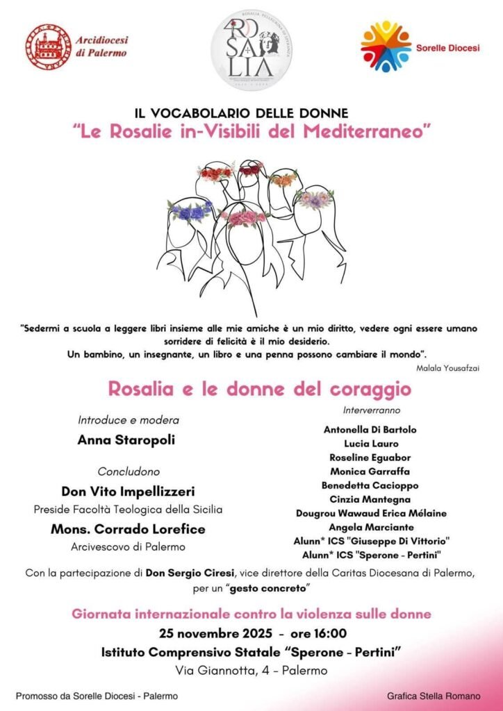 L’iniziativa fa parte del progetto “Vocabolario delle donne. Le Rosalie in-Visibili del Mediterraneo”, tappa del percorso “Sorelle Diocesi”, e vuole promuovere il rispetto di genere e l’educazione all’affettività. L’incontro offrirà uno spazio di riflessione per studenti, famiglie e insegnanti, valorizzando le parole coraggiose delle donne e un linguaggio positivo che supera l’odio.