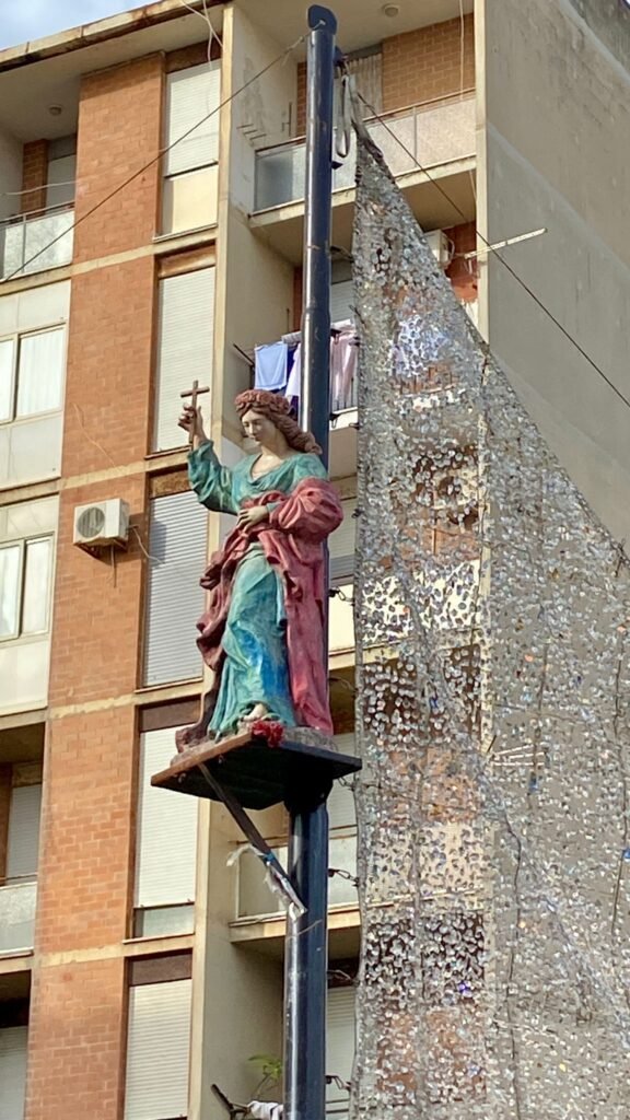 Location: processione che accompagna la Santa all’inizio di via Sacco e Vanzetti per essere riposizionata sul Carro. I bambini delle prime elementari saranno posizionati nei pressi della scuola dell’infanzia Antonino Agostino e al suono di semplici slogan esporranno i loro cartelli, striscioni, disegni sul mare e la pace.