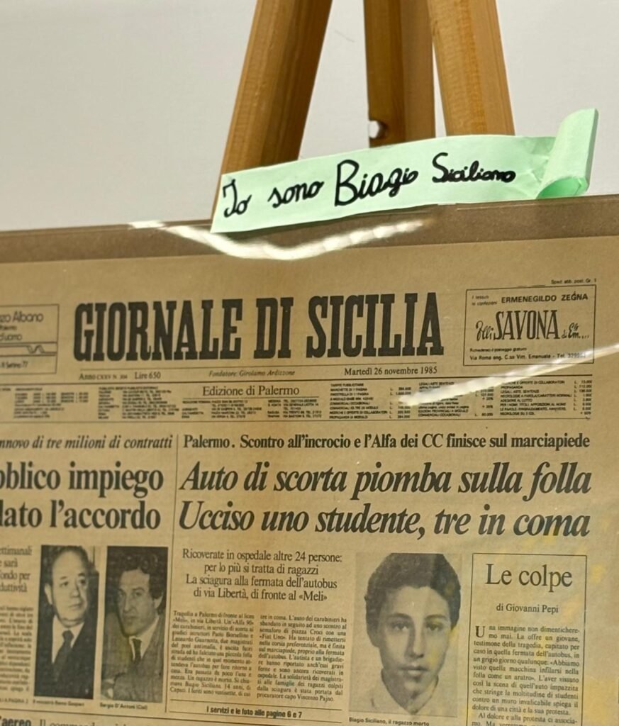 A distanza di quasi quarant’anni, l’istituto che oggi porta il nome di Biagio ha voluto restituire voce e dignità a quel dolore. Alla cerimonia erano presenti i due fratelli della vittima, accompagnati da una comunità che non dimentica. Con loro anche Graziella Accetta, madre di Claudio Domino, il bambino di undici anni ucciso dalla mafia. Il suo intervento è stato uno dei passaggi più intensi della giornata: ha ricordato come questi giovani non debbano essere celebrati come eroi, ma riconosciuti come martiri, vittime innocenti di una violenza che, anche quando colpisce “di riflesso”, lascia cicatrici profonde. “La mafia – ha sottolineato -, ha avuto un’azione collaterale, ma letale. Quei ragazzi non dovevano essere lì: eppure sono stati strappati alla vita”.