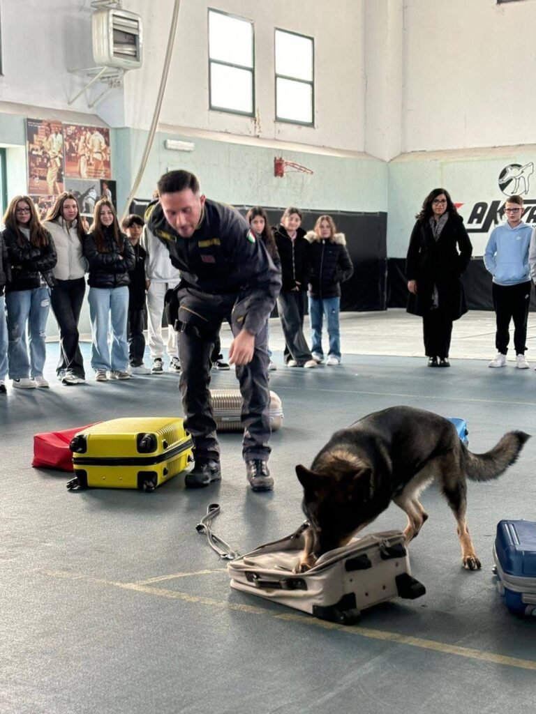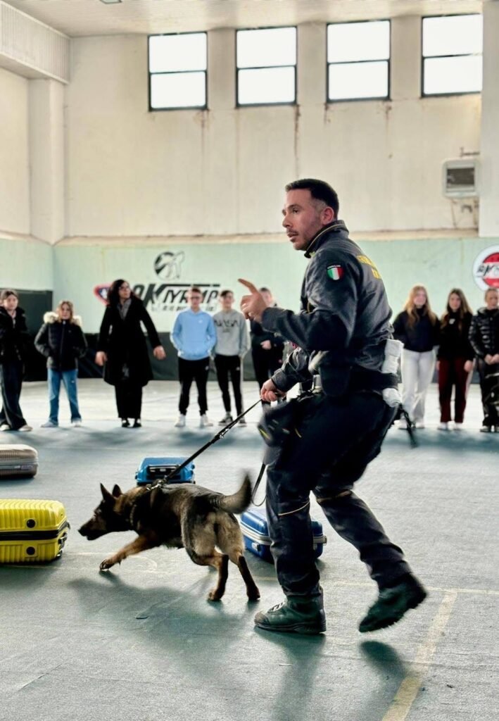 A conclusione della mattinata, la presenza dell’unità cinofila ha rappresentato un momento particolarmente significativo e coinvolgente per gli studenti, rendendo l’esperienza ancora più concreta e memorabile, suggellata da una foto ricordo.