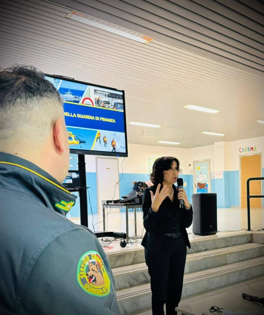 Ad avviare l’incontro è stato l’intervento della Dirigente Scolastica, prof.ssa Maria Ausilia Lupo, che ha rivolto un sentito saluto ai rappresentanti della Guardia di Finanza, esprimendo gratitudine per la loro presenza e per l’impegno nel trasmettere ai giovani i valori fondamentali del rispetto delle regole e del servizio allo Stato. La Dirigente ha evidenziato come il confronto diretto con le istituzioni contribuisca a rafforzare nei ragazzi il senso di responsabilità e di cittadinanza attiva.