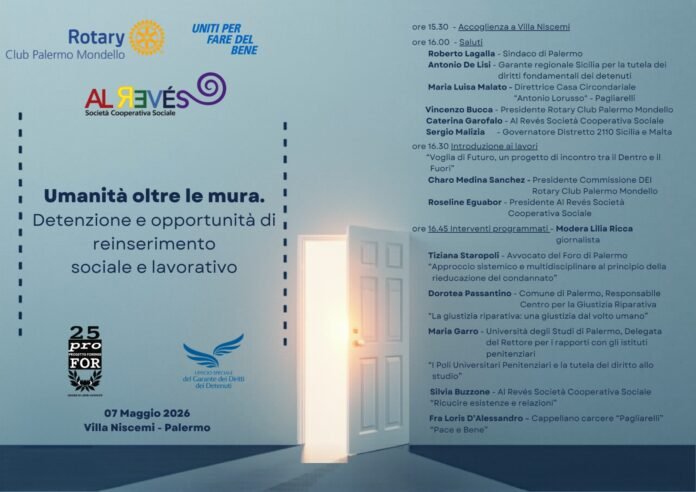 L’evento, promosso dal Rotary Club Palermo Mondello, si pone l’obiettivo di accendere i riflettori sul delicato equilibrio tra l’esecuzione della pena e il diritto al futuro per chi ha vissuto l’esperienza carceraria. L’iniziativa vede la partecipazione attiva della Società Cooperativa Sociale Al Revés, dell’Ufficio Speciale del Garante Regionale dei Diritti dei Detenuti e dell’Unione Liberi Avvocati (Progetto Forense).