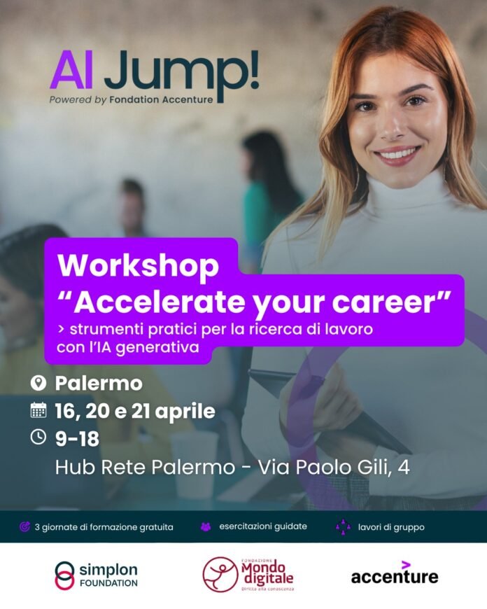 PALERMO. Arriva a Palermo “Accelerate your career”, il workshop intensivo dedicato a chi vuole rendere più efficace la propria ricerca di lavoro grazie all’Intelligenza Artificiale, promosso da Fondazione Mondo Digitale ETS.