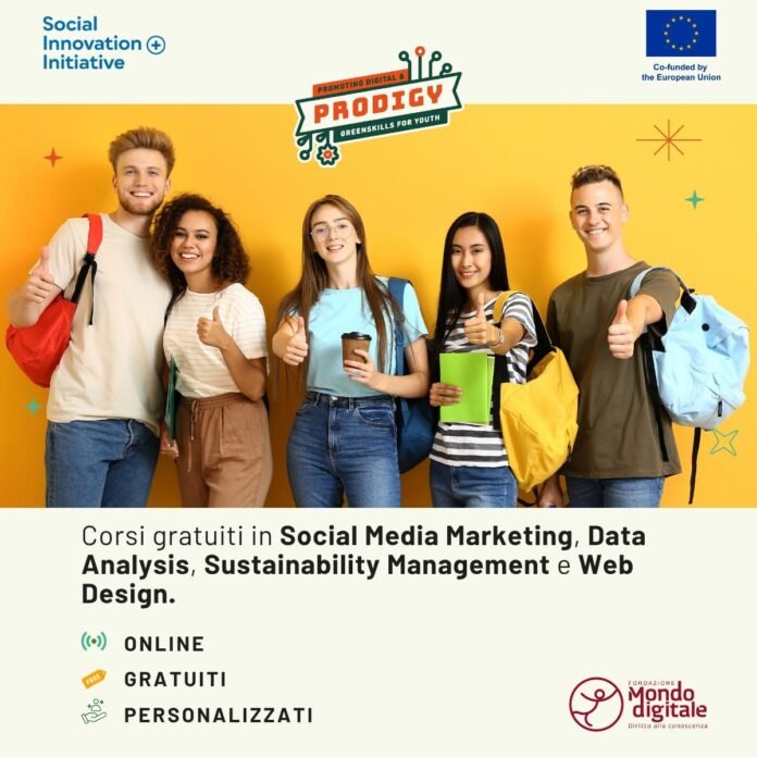 Grazie a PRODIGY i giovani accedono a corsi gratuiti online, con il rilascio di certificazioni in linea con DigComp 2.2 ed ESCO. I percorsi formativi professionalizzanti, di social media marketing, data analysis, management della sostenibilità e web design, sono affiancati da attività individuali di orientamento professionale, per supportare la ricerca attiva e l’inserimento lavorativo. Il progetto è realizzato grazie a un partenariato internazionale che comprende Fondazione L’Albero della Vita ETS (capofila), Fondazione Mondo Digitale ETS, Adecco Italia spa e Università degli Studi Roma Tre, insieme ai partner europei ActionAid Hellas (Grecia) e Partners Bulgaria Foundation (Bulgaria).